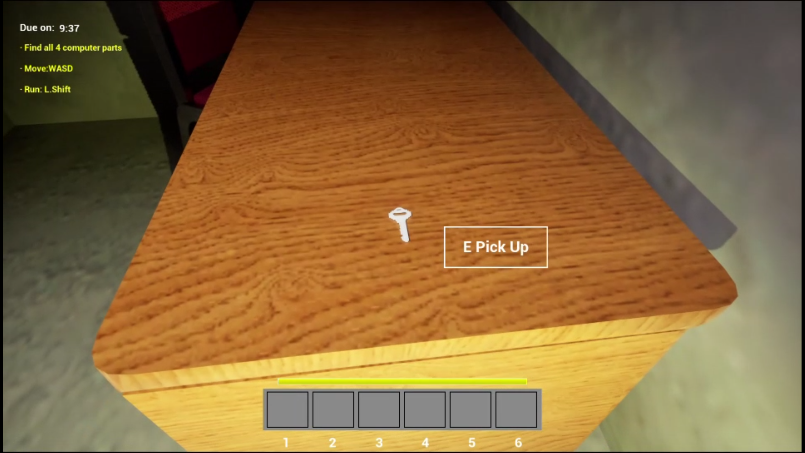 Level 1 – The Scavenger Hunt: Explore the first floor of the school to find your missing computer parts within a 10-minute time limit. Solve riddles, unlock doors with passcodes, and manage a limited inventory to secure all items at the guardhouse.